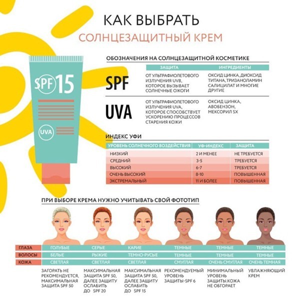 - детям и обладателям светлой кожи 1-го фототипа нужны санскрины с SPF 50;